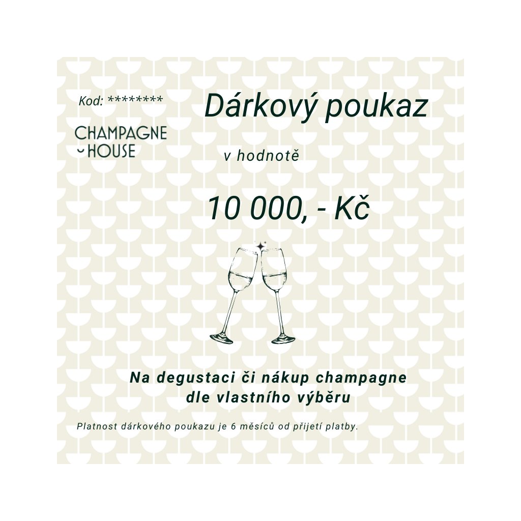 Dárkový voucher na degustaci nejen Champagne – v hodnotě 10.000 Kč Obdarujte zážitkem, který potěší všechny smysly. Voucher můžete využít na degustaci výběrového Champagne a dalších jedinečných nápojů – u nás, v jedinečné atmosféře.