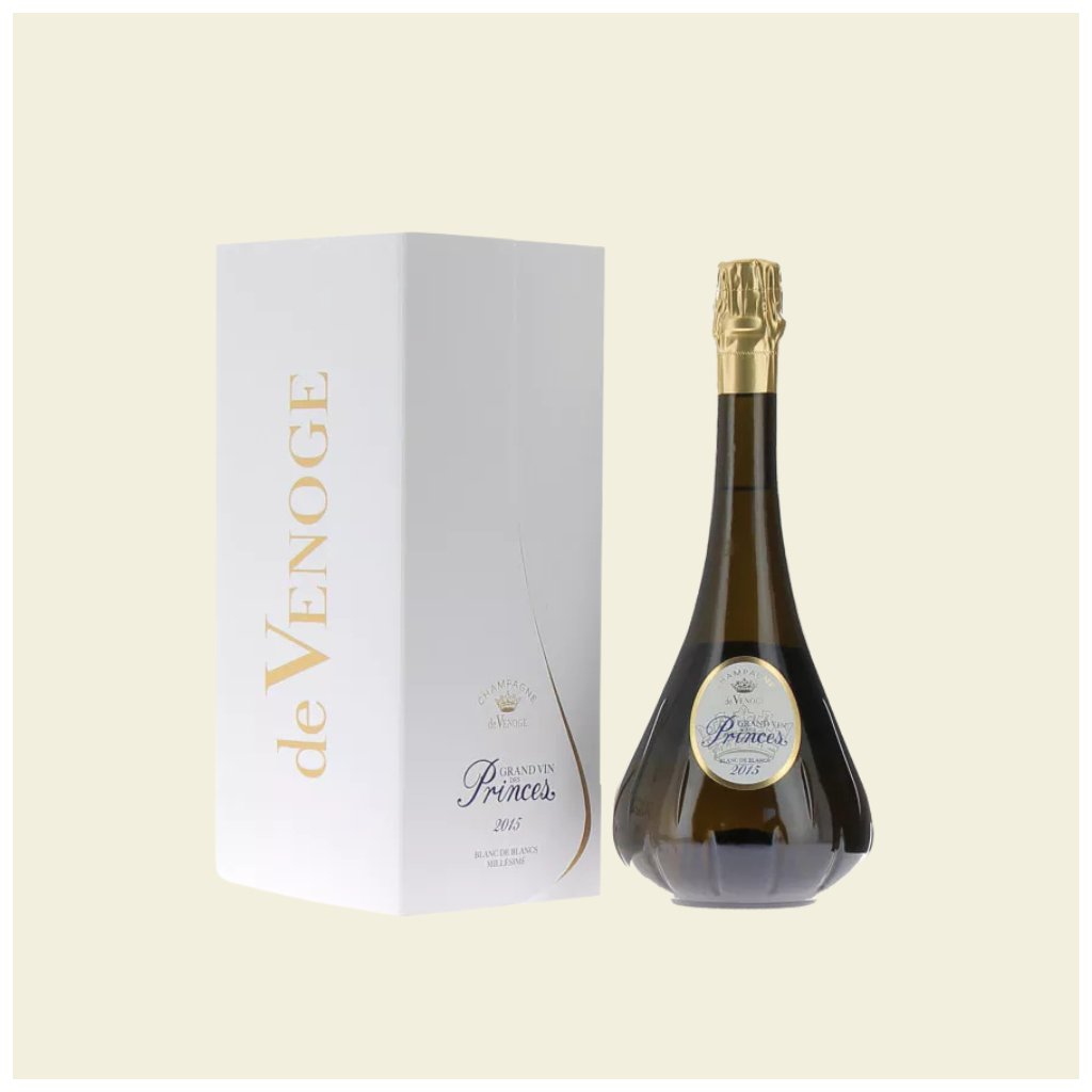 „de Venoge Grand Vin des Princes Blanc de Blancs 2015 (100 % Chardonnay z Premier & Grand Cru vinic jako Le Mesnil‑sur‑Oger a Trépail; dozáž 6 g/l, zrání min. 5 let) nabízí elegantní profil s tóny bílých květů, citrusů, grapefruitu a jemnými náznaky briošky. Vyznamenává se výraznou minerálností a dlouhým, strukturovaným závěrem s nádechem medu a bílého ovoce.“