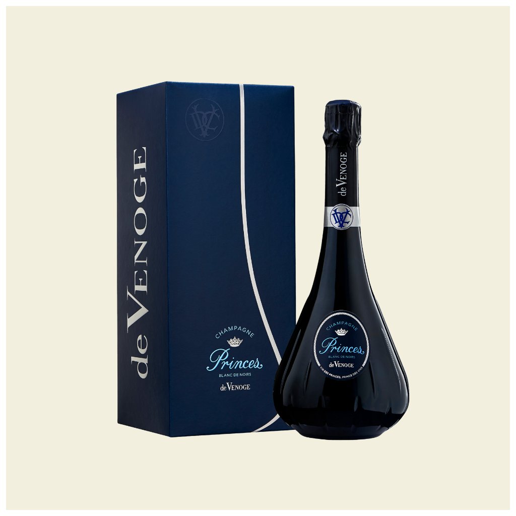 „de Venoge Princes Blanc de Noirs Brut NV (100 % Pinot Noir z Premier a Grand Cru vinic Montagne de Reims; dozáž ~6 g/l, zrání minimálně 5 let) — nabízí bohatý a harmonický projev s tóny zralých malin, višní v čokoládě, jemné kořenitosti a nádechem sušených bylin. V chuti je plný, uhlazený a precizně vyvážený, s dlouhým, minerálně laděným závěrem a dotekem toastového pečiva a lesního ovoce.“