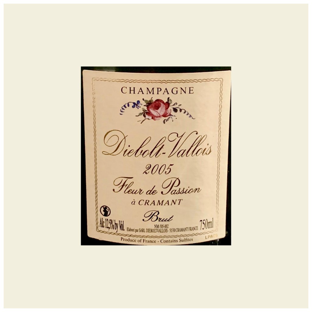 Diebolt-Vallois Fleur de Passion 2005 je prestižní ročníkové cuvée vytvořené ze 100 % Chardonnay z vinic Cramant Grand Cru v Côte des Blancs. Základní vína fermentují výhradně v malých dubových sudech (barriques) bez malolaktické fermentace, což zachovává svěží kyselinu a podporuje strukturu vína. Po druhotném kvašení následuje dlouhé zrání na kalech přibližně 7–10 let, které přináší krémovou texturu a komplexní aromatiku. Champagne získalo 18,5 bodu z 20 v Gault & Millau a 93 bodů od Richarda Juhlina.