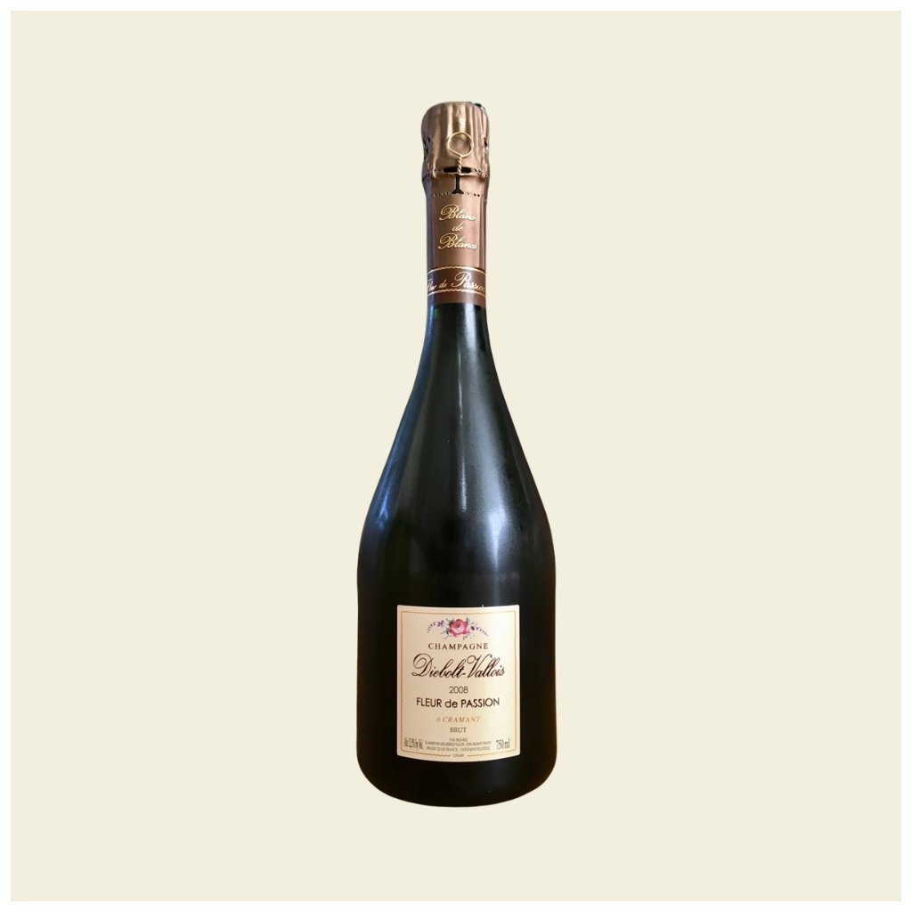 Diebolt-Vallois Fleur de Passion 2008 je prestižní ročníkové champagne Blanc de Blancs vytvořené ze 100 % Chardonnay z vinic Cramant Grand Cru v oblasti Côte des Blancs. Vinifikace probíhá výhradně v barriques bez malolaktické fermentace, což zachovává přirozenou kyselinu a strukturu vína. Po druhotném kvašení následuje mimořádně dlouhé zrání na kalech více než 13 let, které rozvíjí krémovou texturu, jemné perlení a komplexní aromatiku. Champagne získalo 96 bodů Decanter, 95 bodů Wine-Searcher (souhrn kritiků) a 91 bodů Gault & Millau.